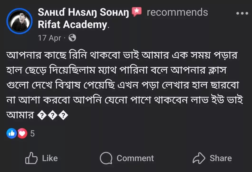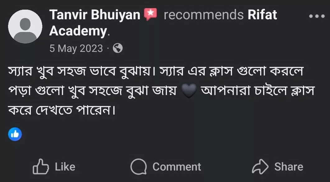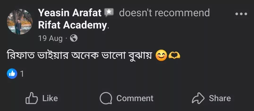 রিফাত একাডেমির মাধ্যমে তাদের শেখার যাত্রা বদলে গেছে—এমনই অভিজ্ঞতা শেয়ার করেছেন আমাদের শিক্ষার্থীরা।